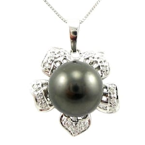 Pearl: top quality 100% authentic baroque shaped Tahitian black pearl Pearl measurement: 13-14 mm in diameter and 15-16 mm in length Luster: high Nacre: greater than 0.8mm required by Tahiti law Color: all natural black with green or slight silver overtones (not dyed or treated) Surface: some natural lines and imperfection Metal: variable: 14K yellow gold, 14K white gold or 925 sterling silver