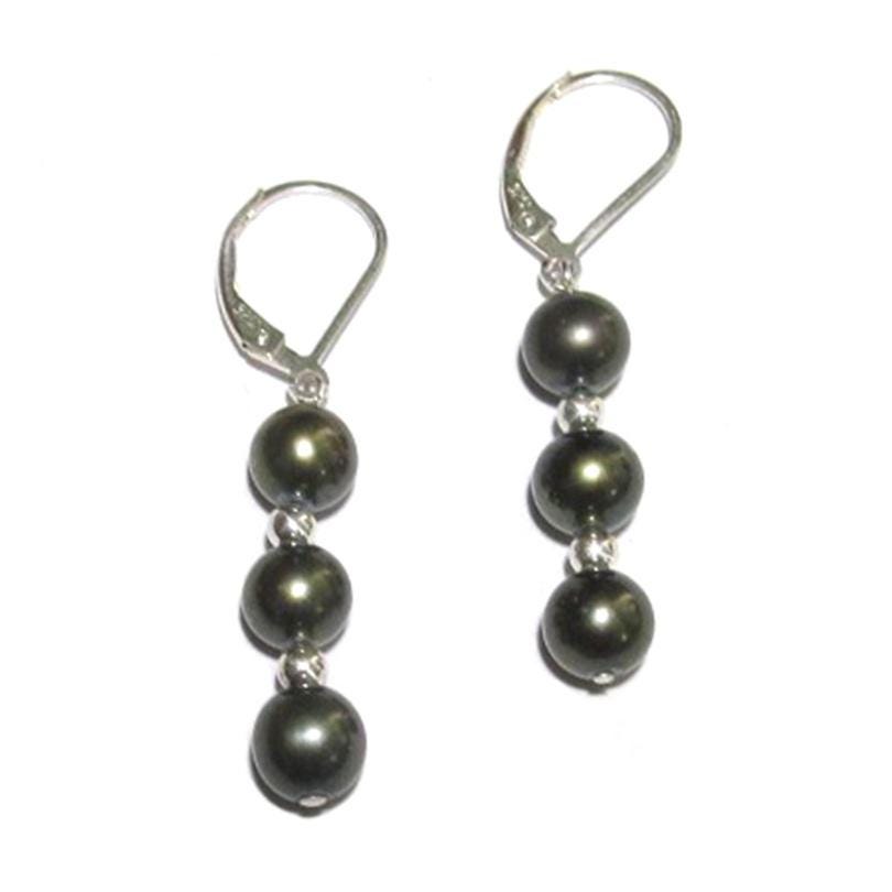 Gorgeous high quality AAA grade genuine fresh water dark green pearl lever back earrings