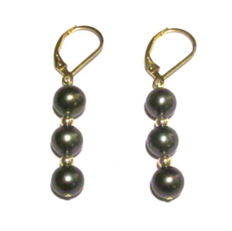 Pearls: high quality AAA grade genuine fresh water dark green pearls Pearl shape: round to off round Pearl measurement: 6-7mm in diameter Luster: high Color: dark green (chemically dyed and treated) Surface: very smooth with no flaws Metal: variable: 14K yellow gold, 14K white gold, gold filled or sterling silver Earring measurement: 1 1/2" (L)